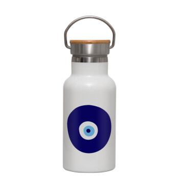 Χάντρα γαλαζιά, Metallic thermos (Stainless steel) White with wooden lid (bamboo), double-walled, 350ml