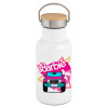 Barbie car, Metallic thermos (Stainless steel) White with wooden lid (bamboo), double-walled, 350ml