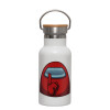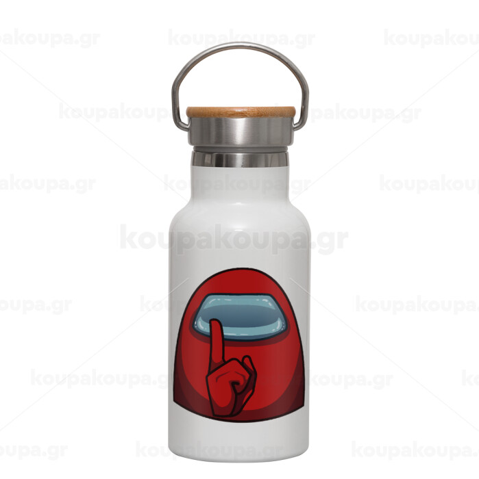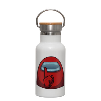 Among US, Metallic thermos (Stainless steel) White with wooden lid (bamboo), double-walled, 350ml