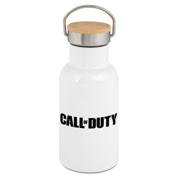 Call of Duty, Metallic thermos (Stainless steel) White with wooden lid (bamboo), double-walled, 350ml