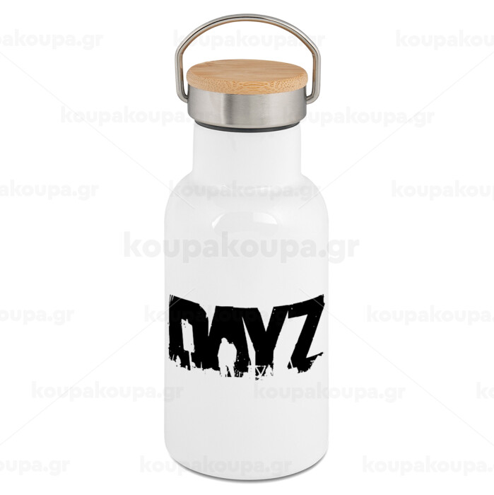 DayZ, Metallic thermos (Stainless steel) White with wooden lid (bamboo), double-walled, 350ml