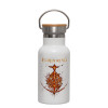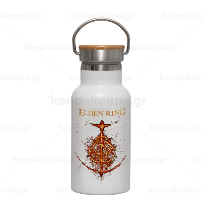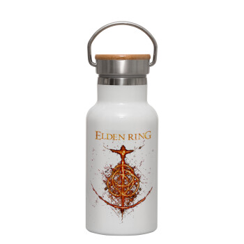 Elden Ring, Metallic thermos (Stainless steel) White with wooden lid (bamboo), double-walled, 350ml