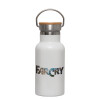 Farcry, Metallic thermos (Stainless steel) White with wooden lid (bamboo), double-walled, 350ml