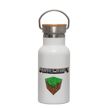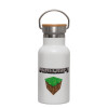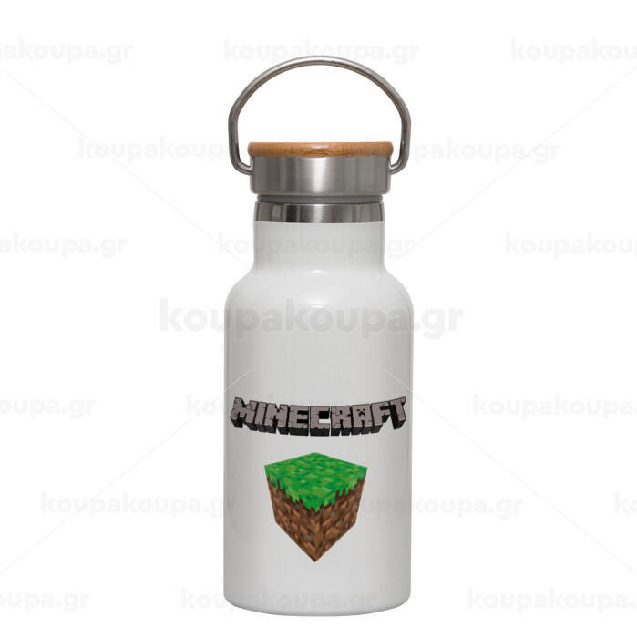 Minecraft dirt, Metallic thermos (Stainless steel) White with wooden lid (bamboo), double-walled, 350ml
