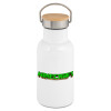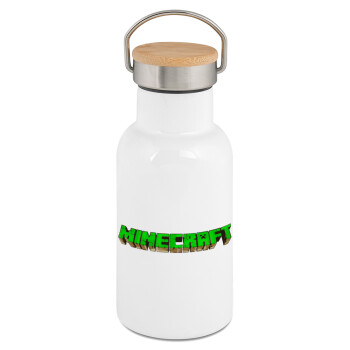 Minecraft logo green, Metallic thermos (Stainless steel) White with wooden lid (bamboo), double-walled, 350ml
