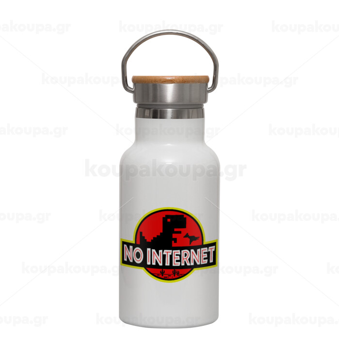 No internet, Metallic thermos (Stainless steel) White with wooden lid (bamboo), double-walled, 350ml