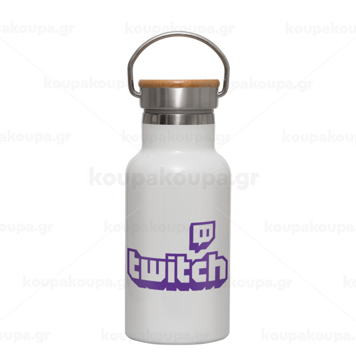 Twitch, Metallic thermos (Stainless steel) White with wooden lid (bamboo), double-walled, 350ml