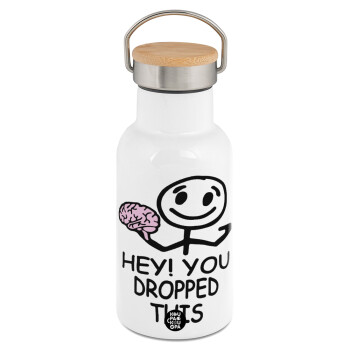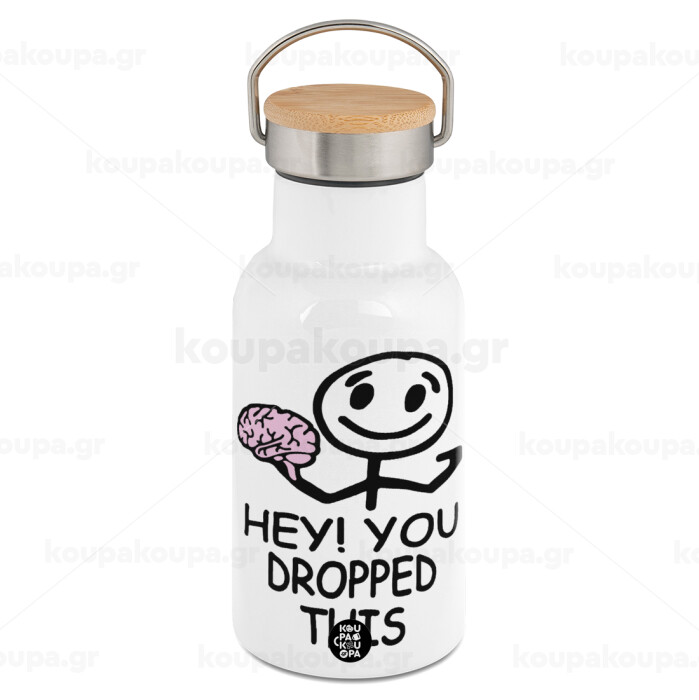 Hey! You dropped this, Metallic thermos (Stainless steel) White with wooden lid (bamboo), double-walled, 350ml