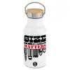 Size matters, Metallic thermos (Stainless steel) White with wooden lid (bamboo), double-walled, 350ml