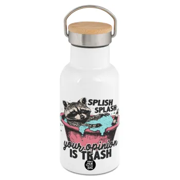Splish splash your opinion is trash, Metallic thermos (Stainless steel) White with wooden lid (bamboo), double-walled, 350ml