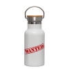 Wanted, Metallic thermos (Stainless steel) White with wooden lid (bamboo), double-walled, 350ml