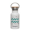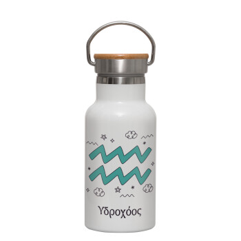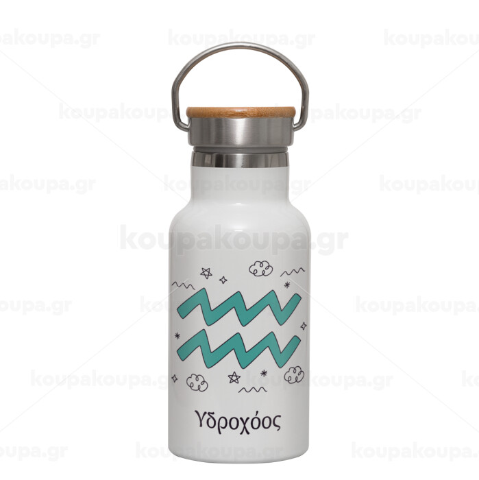 Ζώδια Υδροχόος, Metallic thermos (Stainless steel) White with wooden lid (bamboo), double-walled, 350ml