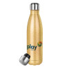 Play by ΟΠΑΠ, Glitter gold stainless steel thermos bottle, double-walled, 500ml