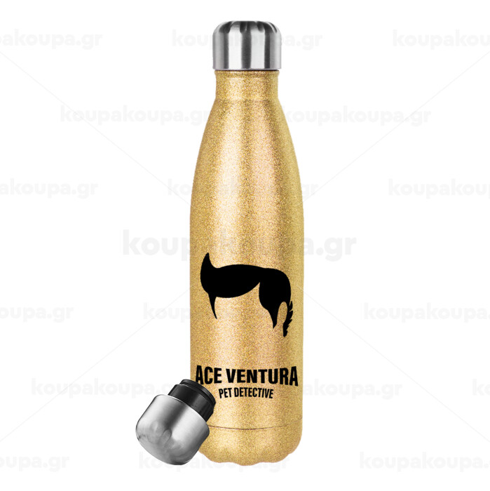 Ace Ventura Pet Detective, Glitter gold stainless steel thermos bottle, double-walled, 500ml