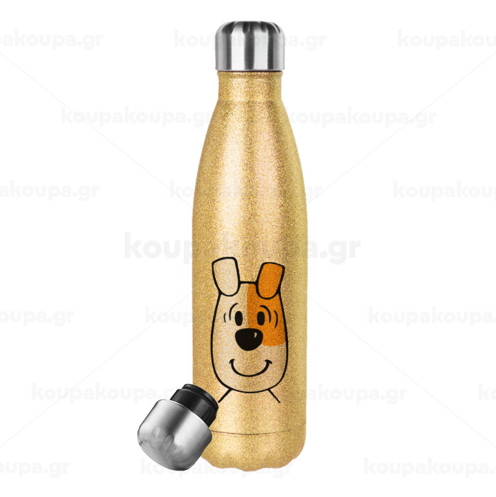 reksio bolek i lolek, Glitter gold stainless steel thermos bottle, double-walled, 500ml