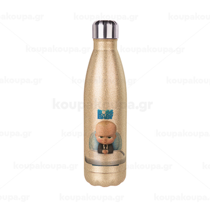 The boss baby, Glitter gold stainless steel thermos bottle, double-walled, 500ml