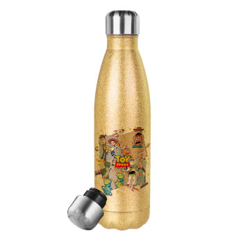 toystory characters, Glitter gold stainless steel thermos bottle, double-walled, 500ml