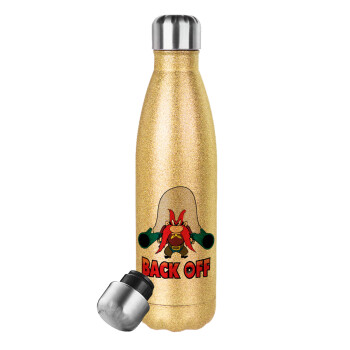 Yosemite Sam Back OFF, Glitter gold stainless steel thermos bottle, double-walled, 500ml