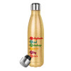 Elephants And Donkeys Grow Big Ears, Glitter gold stainless steel thermos bottle, double-walled, 500ml