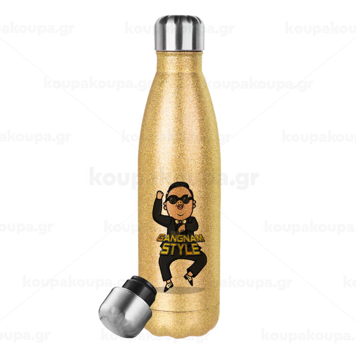 PSY - GANGNAM STYLE, Glitter gold stainless steel thermos bottle, double-walled, 500ml