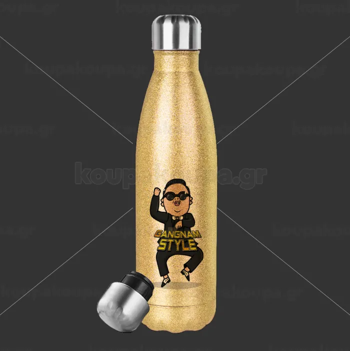 PSY - GANGNAM STYLE, Glitter gold stainless steel thermos bottle, double-walled, 500ml