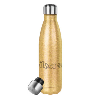 The Doors, Glitter gold stainless steel thermos bottle, double-walled, 500ml