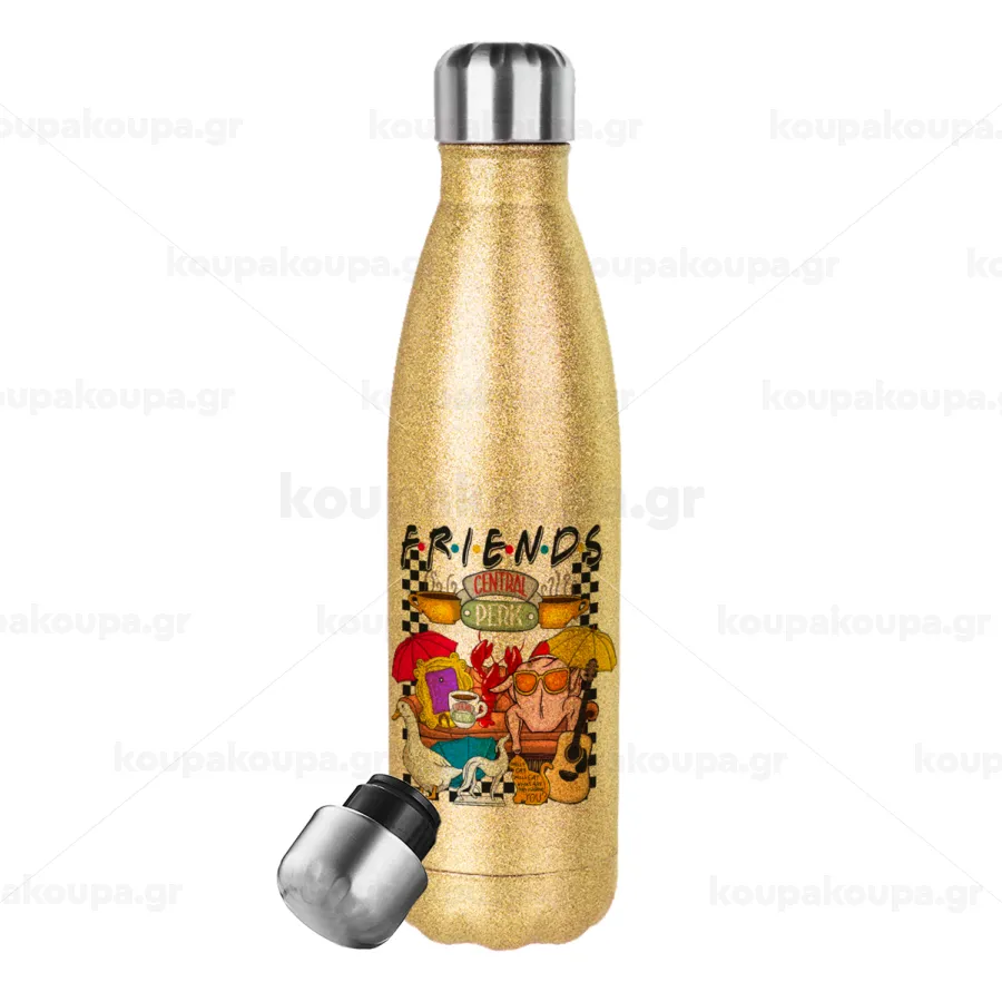 Friends, Glitter gold stainless steel thermos bottle, double-walled, 500ml