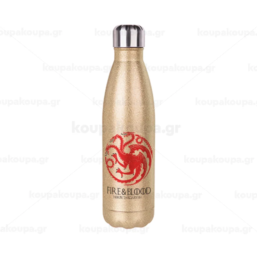 GOT House Targaryen, Fire Blood, Glitter gold stainless steel thermos bottle, double-walled, 500ml