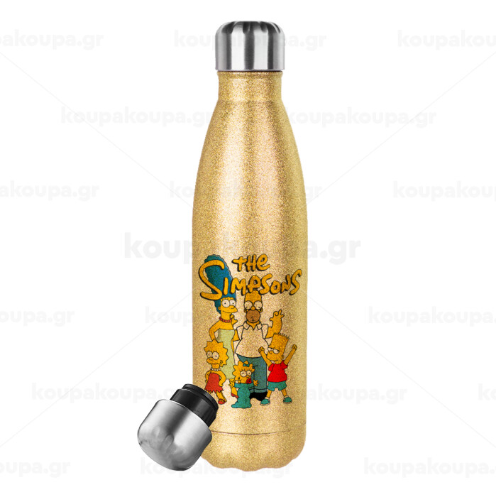 The Simpsons, Glitter gold stainless steel thermos bottle, double-walled, 500ml