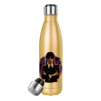 Wednesday moonlight, Glitter gold stainless steel thermos bottle, double-walled, 500ml