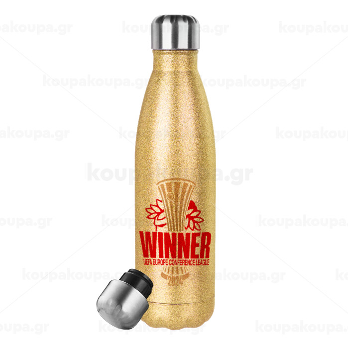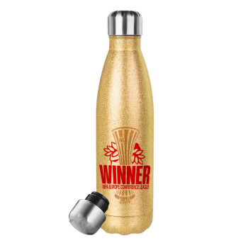 Europa Conference League WINNER, Glitter gold stainless steel thermos bottle, double-walled, 500ml