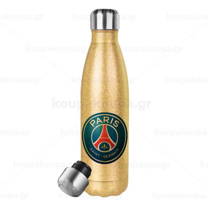 Paris Saint-Germain F.C., Glitter gold stainless steel thermos bottle, double-walled, 500ml