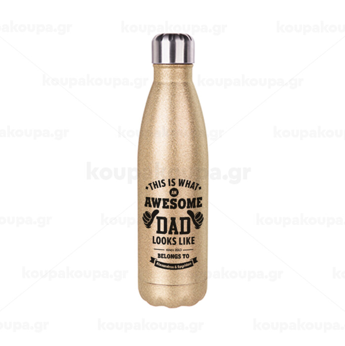This is what an Awesome DAD looks like, Glitter gold stainless steel thermos bottle, double-walled, 500ml