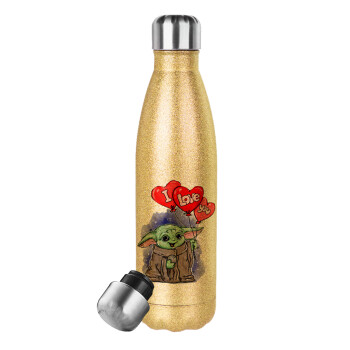 Yoda, i love you, Glitter gold stainless steel thermos bottle, double-walled, 500ml