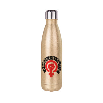 Ημέρα της γυναίκας, Glitter gold stainless steel thermos bottle, double-walled, 500ml
