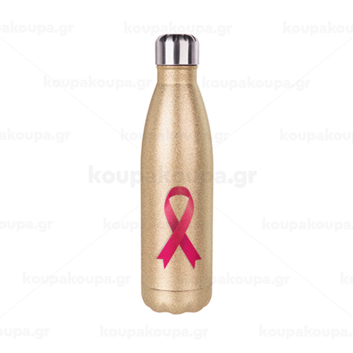 World cancer day, Glitter gold stainless steel thermos bottle, double-walled, 500ml