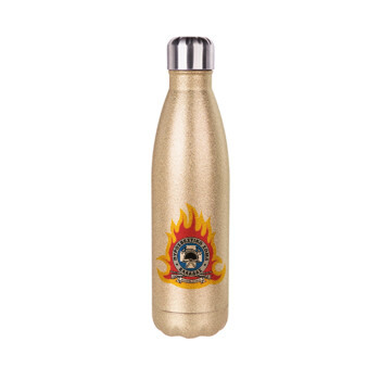 Πυροσβεστικό σώμα Ελλάδος σκούρο, Glitter gold stainless steel thermos bottle, double-walled, 500ml