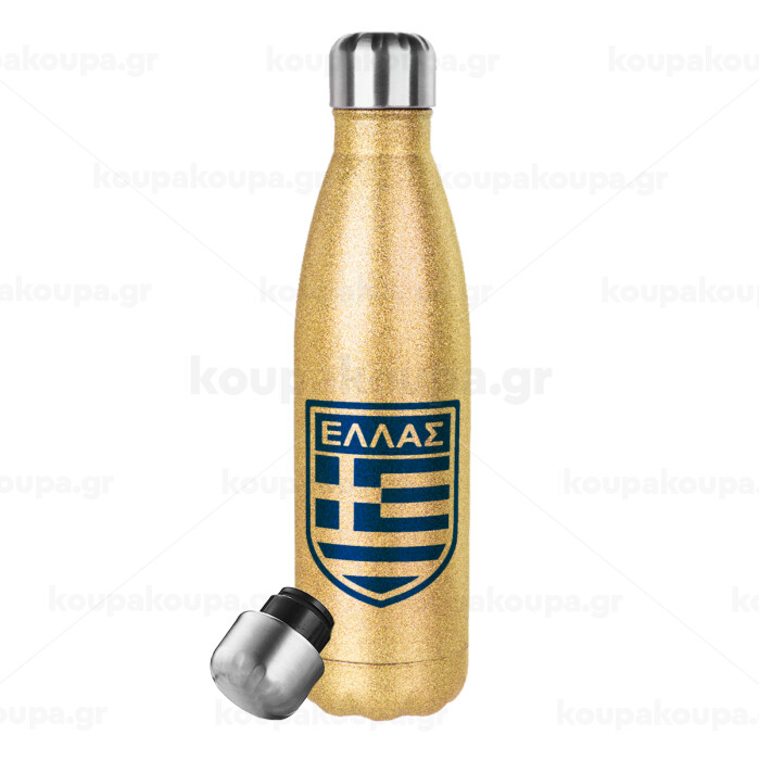 Hellas, Glitter gold stainless steel thermos bottle, double-walled, 500ml