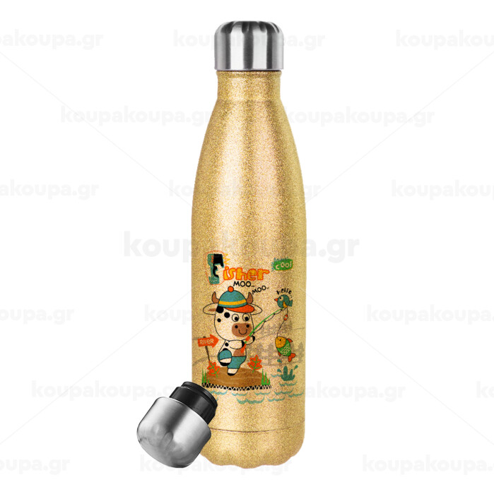 Kids Fisherman, Glitter gold stainless steel thermos bottle, double-walled, 500ml