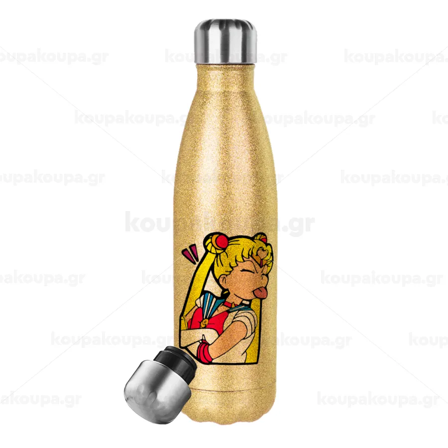 Sailor Moon, Glitter gold stainless steel thermos bottle, double-walled, 500ml
