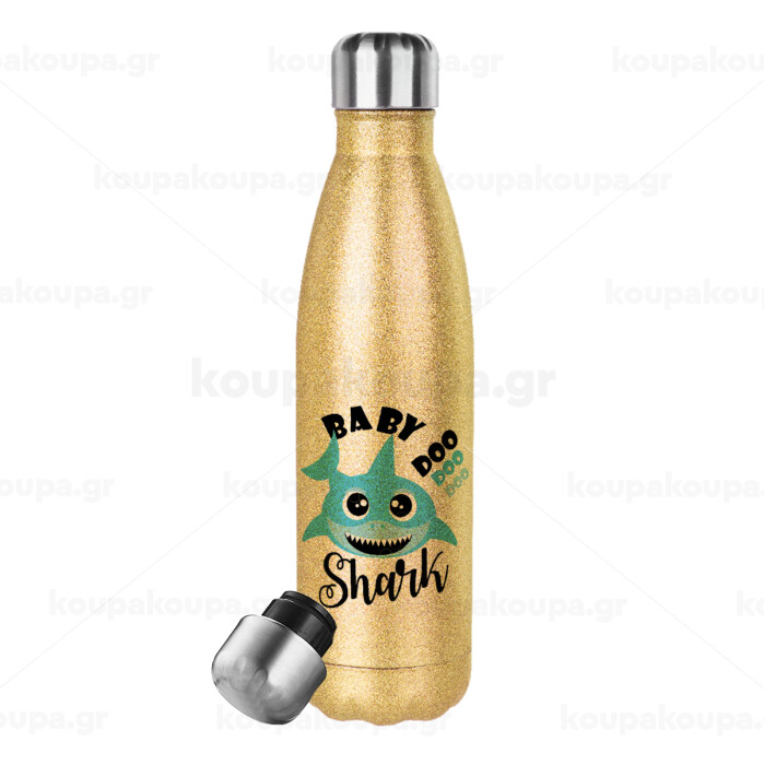 Baby Shark (boy), Glitter gold stainless steel thermos bottle, double-walled, 500ml