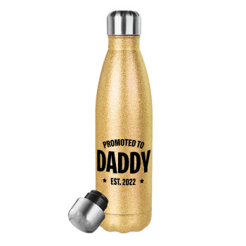 Promoted to Daddy, Glitter gold stainless steel thermos bottle, double-walled, 500ml