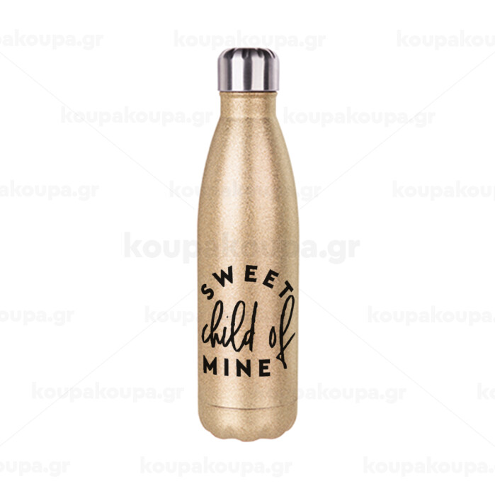 Sweet child of mine!, Glitter gold stainless steel thermos bottle, double-walled, 500ml