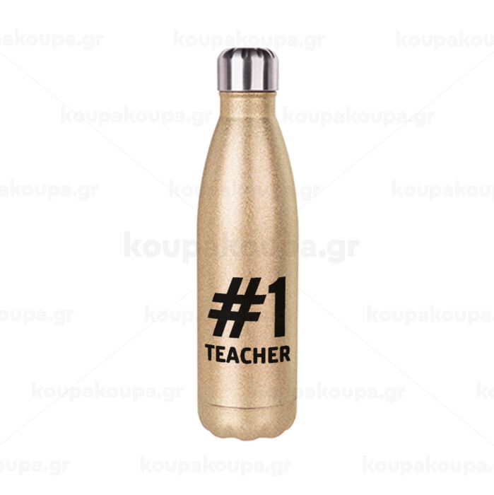#1 teacher, Glitter gold stainless steel thermos bottle, double-walled, 500ml