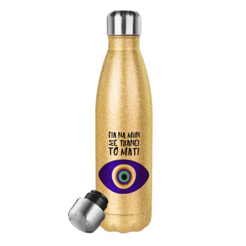 Για να μην σε πιάνει το μάτι, Glitter gold stainless steel thermos bottle, double-walled, 500ml