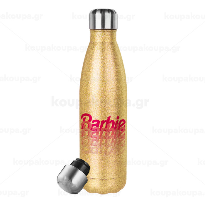 Barbie repeat, Glitter gold stainless steel thermos bottle, double-walled, 500ml