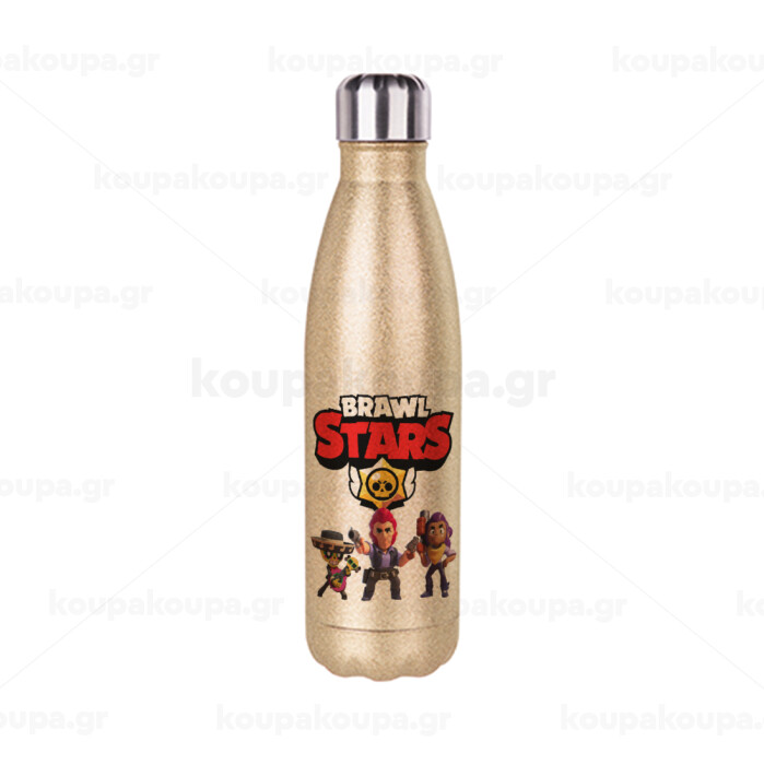 Brawl Stars Desert, Glitter gold stainless steel thermos bottle, double-walled, 500ml
