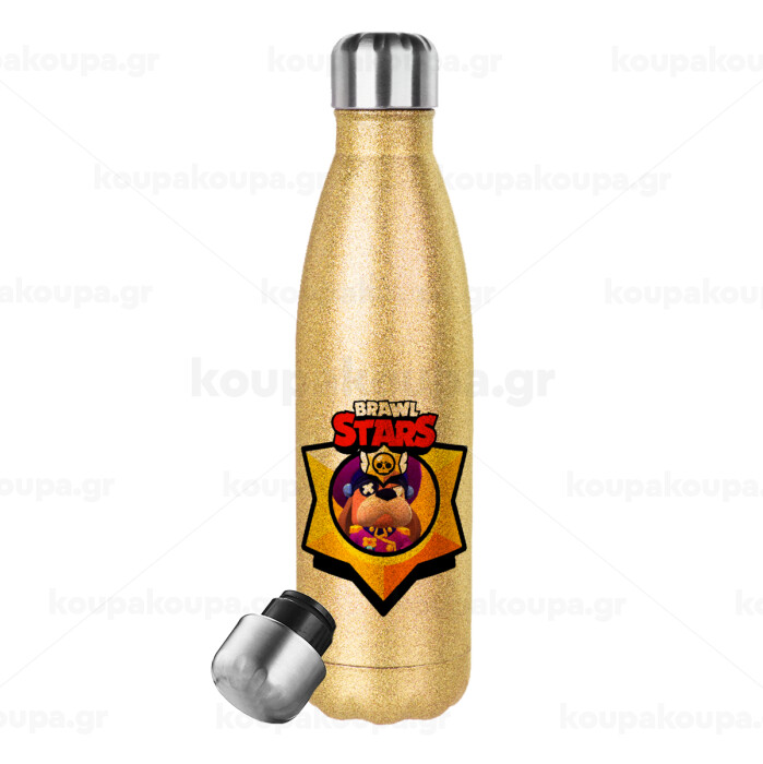 Brawl Stars Ruffs, Glitter gold stainless steel thermos bottle, double-walled, 500ml