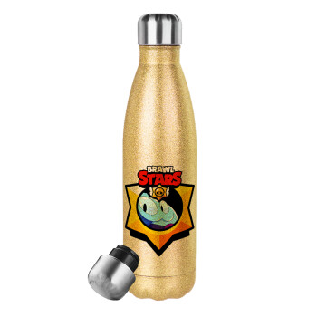Brawl Stars Squeak, Glitter gold stainless steel thermos bottle, double-walled, 500ml