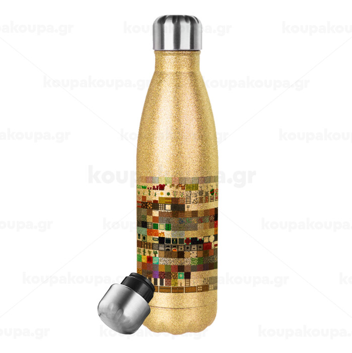 Minecraft blocks, Glitter gold stainless steel thermos bottle, double-walled, 500ml